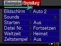 PLAYモードにし、【MENU】キーを押す。メニューが表示されたら、コントロールボタンの右側【 】を押し、一番上のタブを右側に切り替える。(Fig.1) |